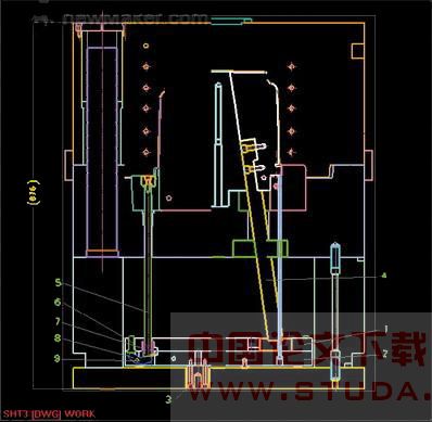 5.推方杆 6.顶针 7.弹弓 8.弯销 9.销钉