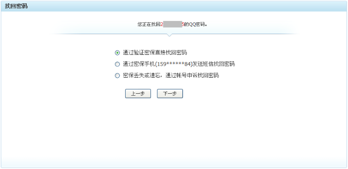 如果您已经设置了密码保护,那么您可以通过选择验证当前可用的密保手段快速找回QQ密码。